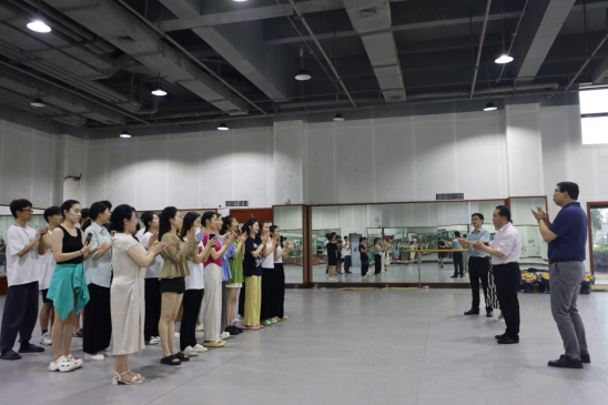 必赢官网一行前往演艺中心参观访问,对排练中的师生予以慰问,并观看了学生们的展演,见证了短短2个月时间,学生们的舞蹈技能在实践中得到的飞速提升。