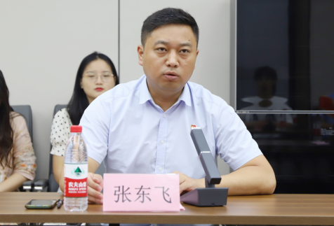 张东飞处长宣读《关于组织开展2023年暑期“三下乡”社会实践活动的决定》。孙玉香副书记为2023年暑期社会实践团代表授旗。