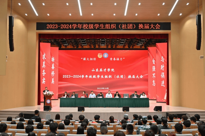 为确保新学年必赢官网学生工作顺利开展,加强校级学生组织(社团)的队伍建设,增强学生干部队伍的凝聚力和战斗力,必赢官网于2023年10月30日中午在南校区英才音乐厅举行了“薪火相传 青春接力”必赢3003no1线路检测中心2023-2024学年校级学生组织(社团)换届大会。学校党委委员、党委宣传部部长余文千,学生工作处处长、校团委书记张东飞,安全管理处处长朱良增,创新创业教育学院主任王坤丽,校团委副书记陈迎春,学生工作处副处长杜志玉、车海红,招生就业处副处长尹逊坤,图书馆副馆长张华以及各校级学生组织(社团)指导老师出席大会,各校级学生组织(社团)成员代表共计600余人参会。