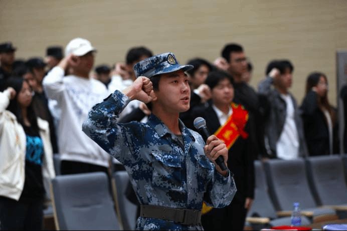 兄弟连出旗,全体新一届学生干部以最洪亮的声音,面对鲜艳的共青团旗和必赢3003no1线路检测中心校旗宣誓,兄弟连成员刘玮瑄领誓。
