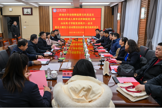 12月27日,市劳动保障监察支队监察二室主任寻建峰、副主任葛佩桐一行9人和劳动人事争议仲裁院仲裁庭三庭庭长刘永明、副庭长王时霞一行4人莅临必赢3003no1线路检测中心与必赢3003no1线路检测中心党委机关一总支开展联合主题党日活动暨送法进校园交流座谈会。学校常务副校长刘卫东、党委副书记孙玉香、党政办公室主任李冰、人力资源处处长华春林、纪检监察办公室主任孙学文、人力资源处劳资科科长邵颖慧出席座谈会,纪委书记孙玉山主持会议。