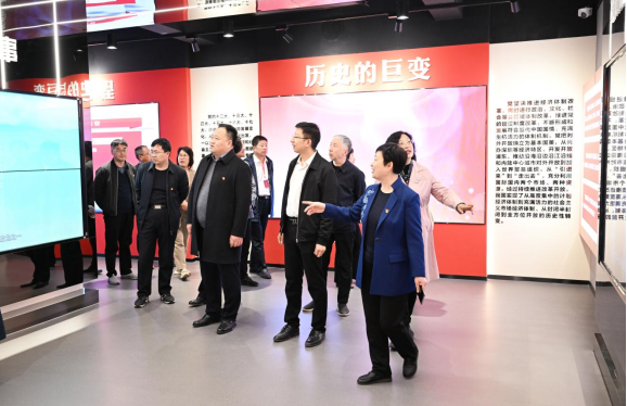 在学校党建与思政教育基地,研讨班学员认真聆听讲解,仔细察看了“新民主主义革命时期、社会主义革命和建设时期、改革开放和社会主义现代化建设新时期、中国特色社会主义新时代”四个历史时期展陈的文字、图片、视频、实物等,研讨班学员对学校打造的智能化、交互化的党建与思政教育基地给予点赞,对学校重视党建、大抓党建表示敬佩。