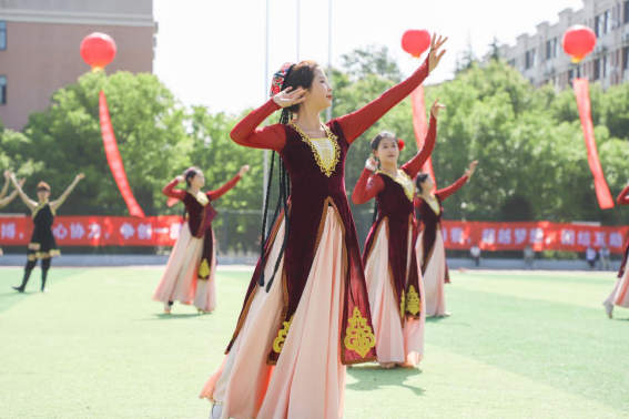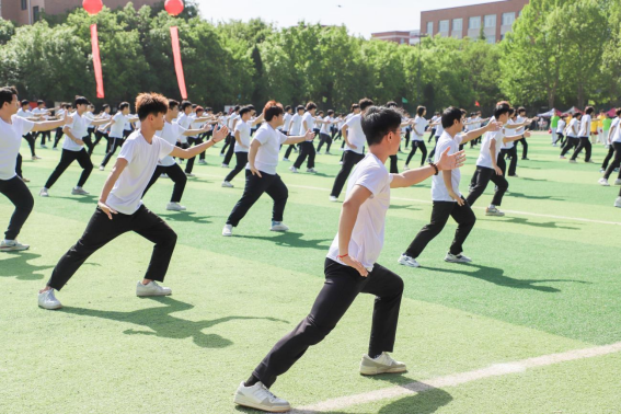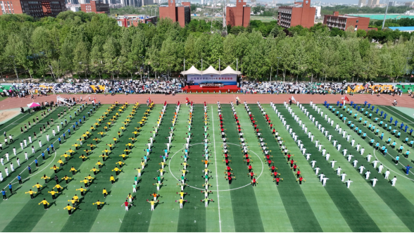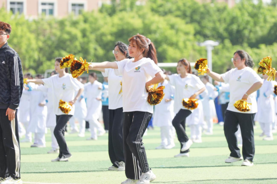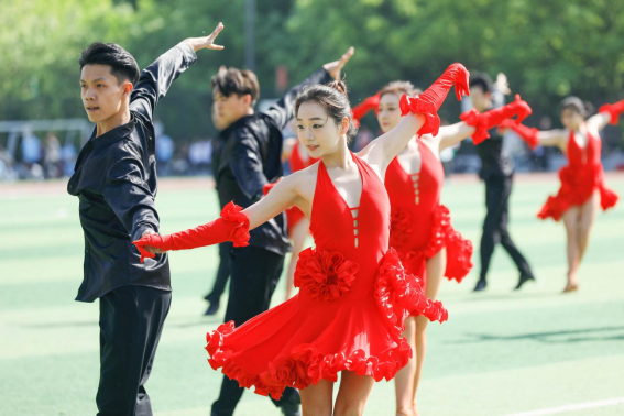 开幕式上的暖场节目精彩纷呈,学前教育学院带来了罐罐操表演,朝气蓬勃的学生们在绿茵草地上绽放出学前活力,欢快的歌声和活泼的舞蹈相得益彰、引人入胜;音乐舞蹈学院的中国舞、体舞表演,每一次转身、每一个跳跃都充满了力量与美感,舞出了青春风采,展现了一幅幅精彩绝伦的动态画卷,赢得现场观众的阵阵掌声和喝彩;工学院的学生伴随着悠扬的乐曲带来了太极拳表演,动作如行云流水,连绵不绝,一招一式轻柔中透出慷慨豪迈之气,为现场观众展现了一场别开生面的太极盛宴;所有演职人员、各运动员代表队表演了大型团体操《上春山》,绿茵场上,花球舞动,传递着坚韧与毅力,呈现着团队精神的内涵,意气风发踌满志,春风得意正少年!