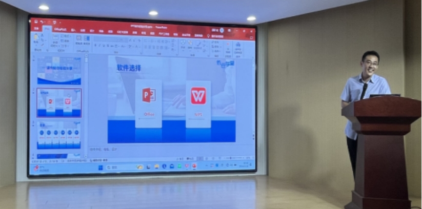 “工欲善其事,必先利其器”,为充分发挥多媒体课件在教育教学活动中的作用,提高教师多媒体课件制作水平,解决教师在课件制作中存在的问题,促进人才培养水平和教学质量全面提升。5月16日中午,我院在艺体中心多功能厅举办PPT课件制作技巧与经验分享主题讲座,本次讲座聘请北京依云科创教育科技有限公司技术总监康宁主讲,全体青年教师参加。
