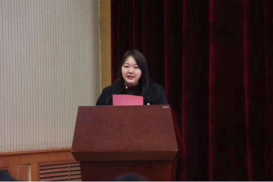 新一届学生会主席团成员葛冰清代表新一届主席团发言