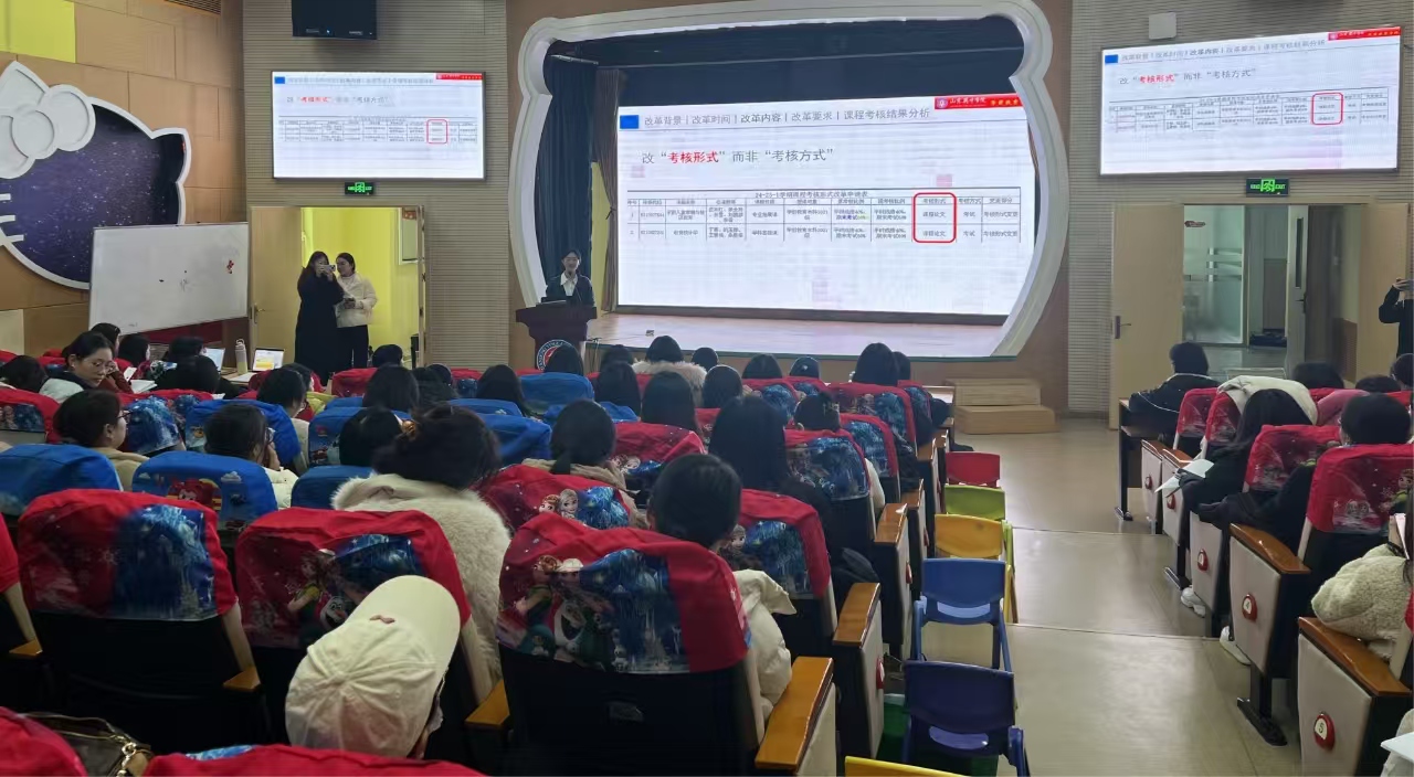 为深入推进学前教育专业认证工作,提升青年教师在课程考核方式改革方面的认识与实践能力,11月26日,学前教育学院专业负责人王晓斐副教授为青年教师举办了一场《专业认证课程考核方式改革专题培训》。此次培训聚焦于改革背景、改革时间、改革内容、改革要求以及课程考核结果分析等六个核心方面。